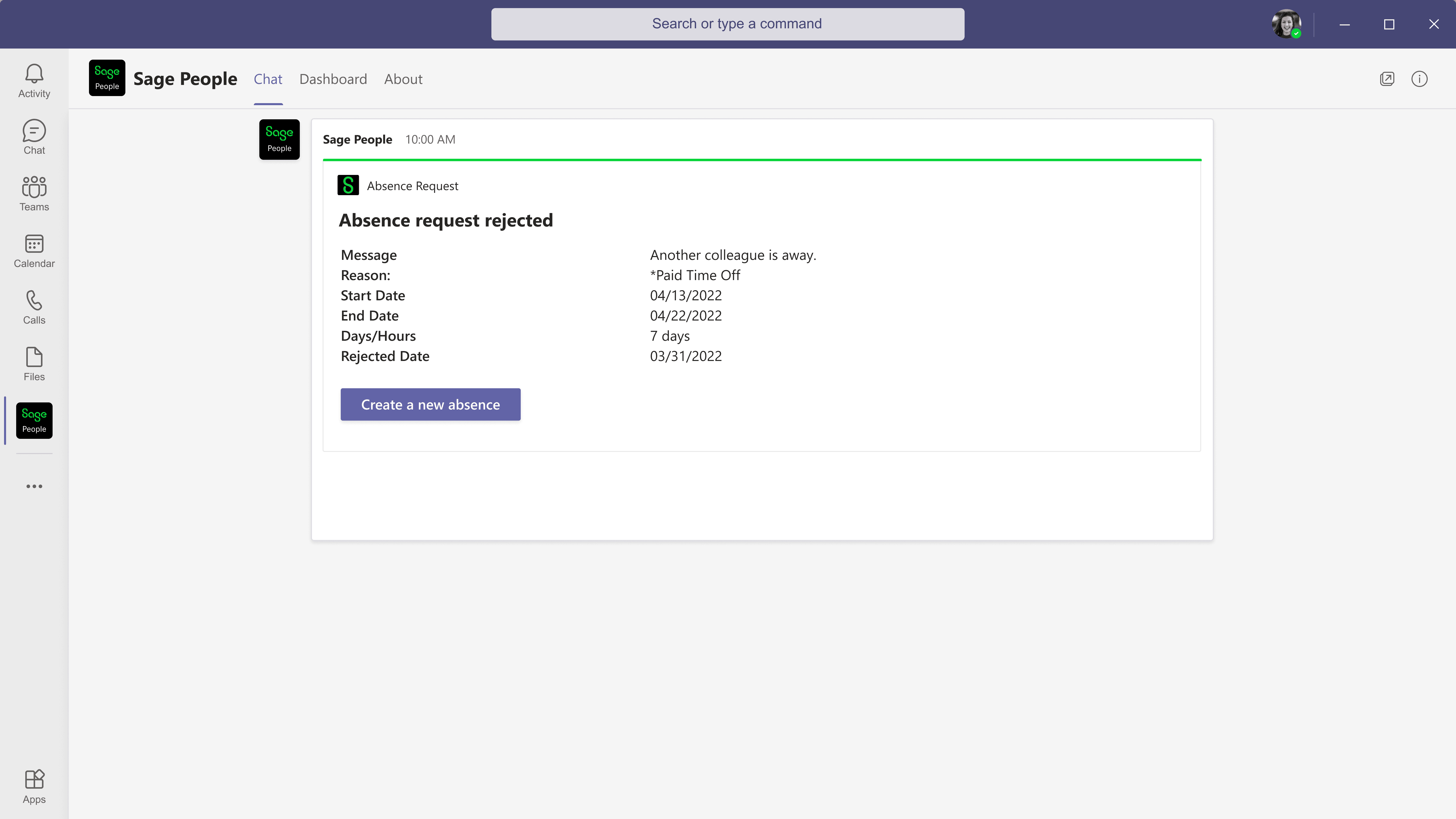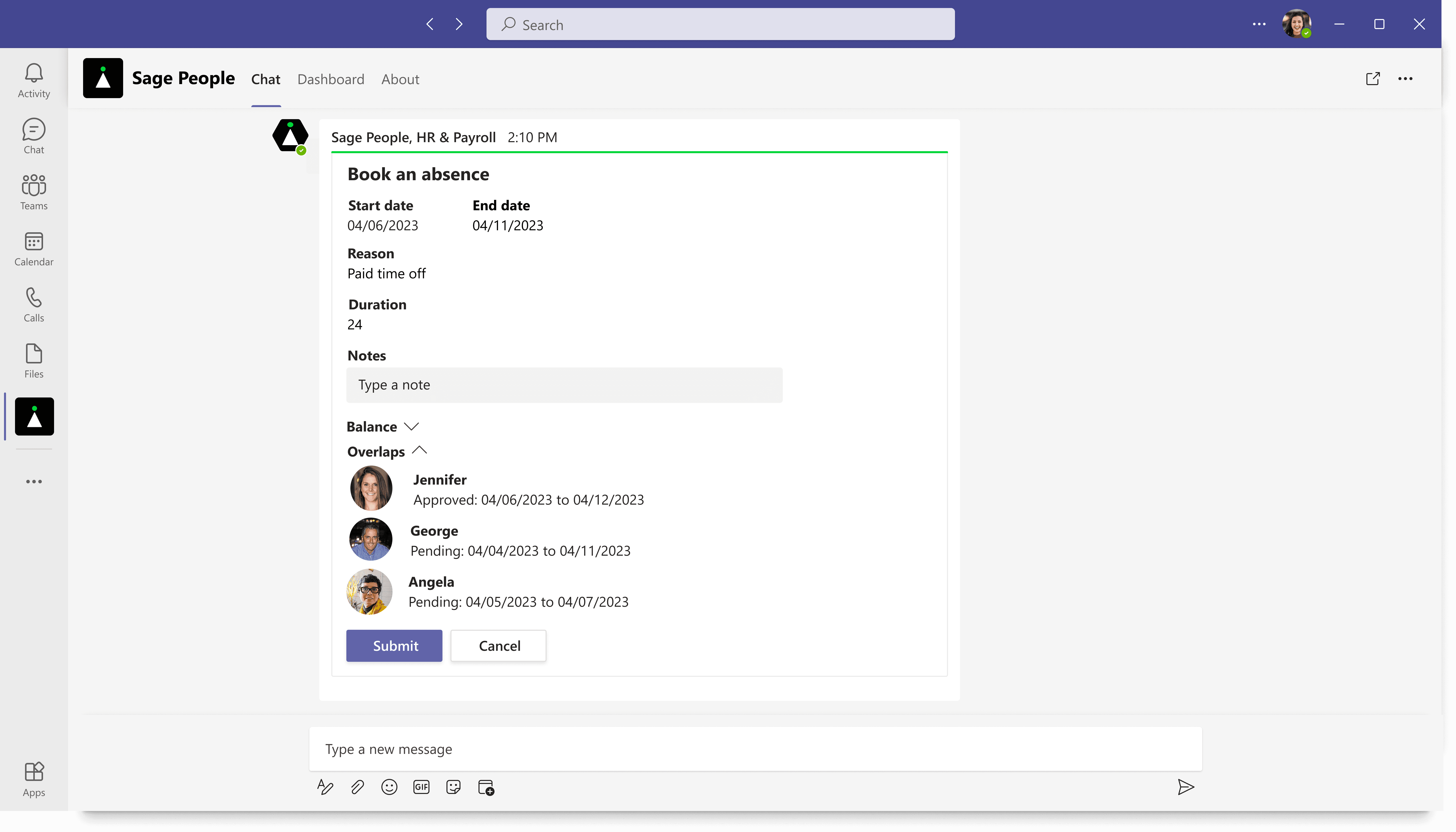 Managing time off without leaving Teams